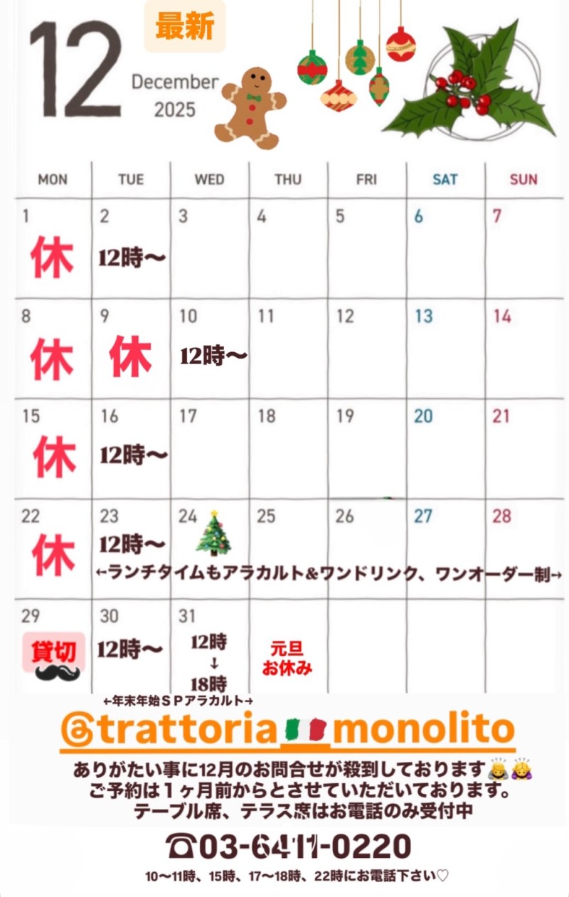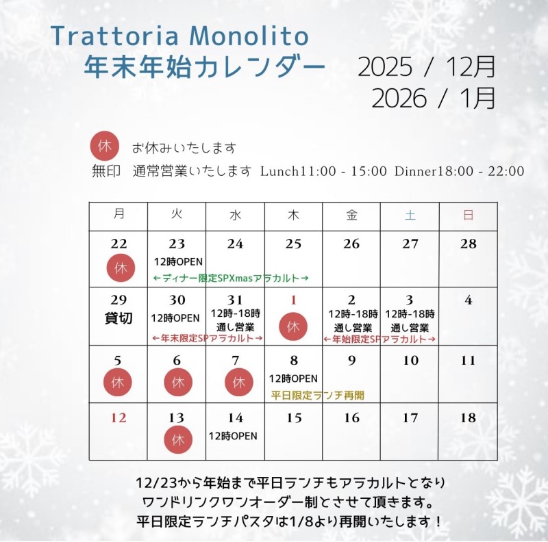 | 店名 | Trattoria Monolito(トラットリア モノリート) |